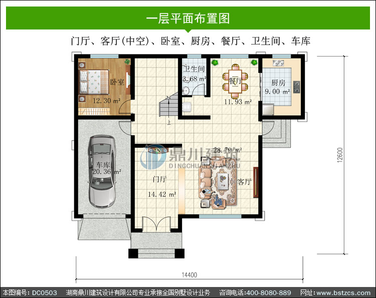 | 一 層: | 門廳、客廳(中空)、臥室、廚房、餐廳、衛(wèi)生間、車庫 | |||