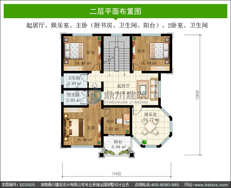| 二 層: | 起居廳、娛樂室、主臥(附書房、衛(wèi)生間、陽臺)、2臥室、衛(wèi)生間 | |||