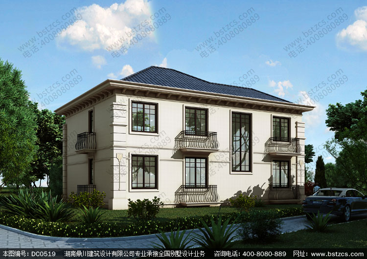 歐式二層帶車庫和露臺農(nóng)村自建房屋設(shè)計(jì)圖紙_農(nóng)村二層別墅設(shè)計(jì)圖紙,鼎川建筑