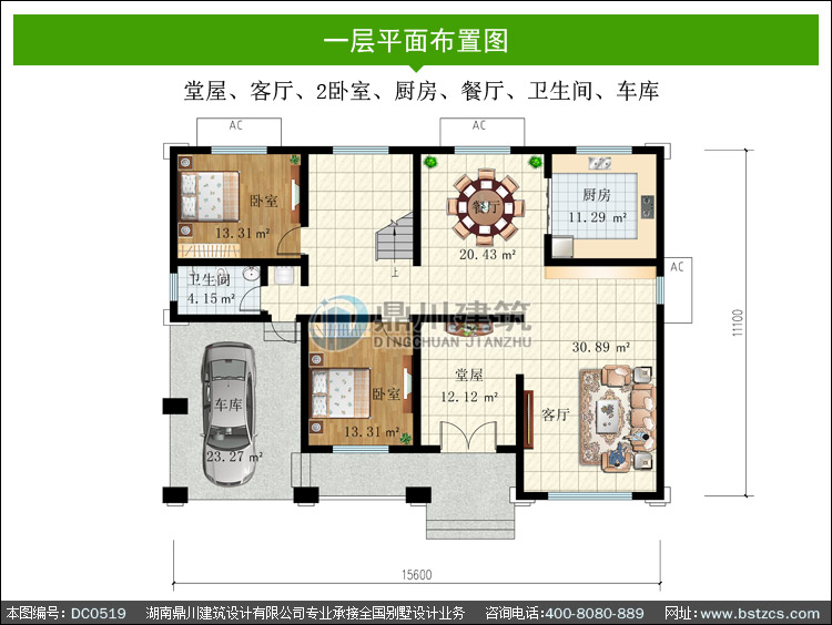 | 一 層: | 堂屋、客廳、2臥室、廚房、餐廳、衛(wèi)生間、車庫 | |||