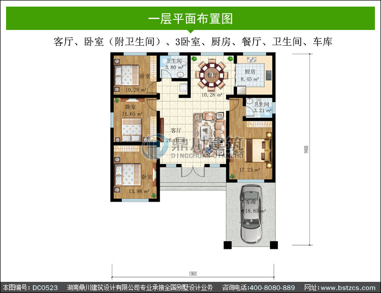 農(nóng)村一層帶車庫實用型農(nóng)村別墅設計圖紙_農(nóng)村房屋設計圖,鼎川建筑