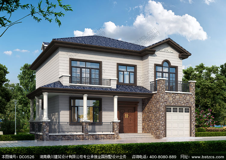 新農村二層帶車庫別墅圖紙及效果圖_農村兩層自建房設計圖紙,鼎