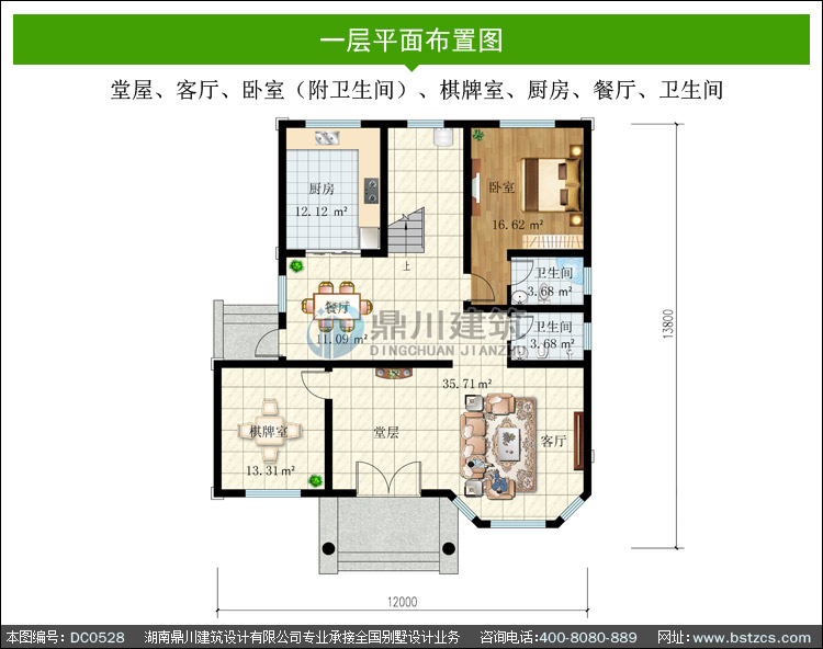 | 一 層: | 堂屋、客廳、臥室(附衛(wèi)生間)、棋牌室、廚房、餐廳、衛(wèi)生間 | |||