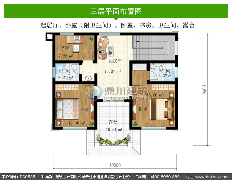 | 三 層: | 起居廳、臥室(附衛(wèi)生間)、臥室、書房、衛(wèi)生間、露臺 | |||