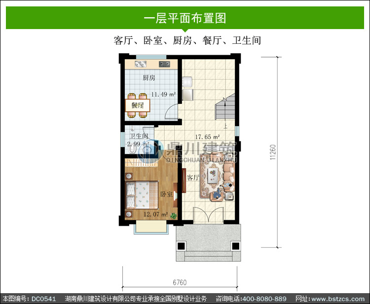 | 一 層: | 客廳、臥室、廚房、餐廳、衛(wèi)生間 | |||