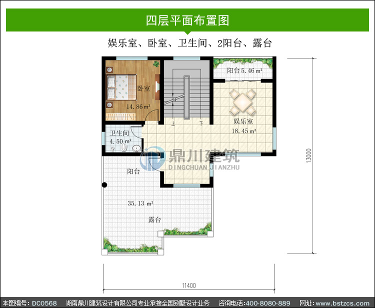 | 四 層: | 娛樂室、臥室、衛生間、2陽臺、露臺 | |||