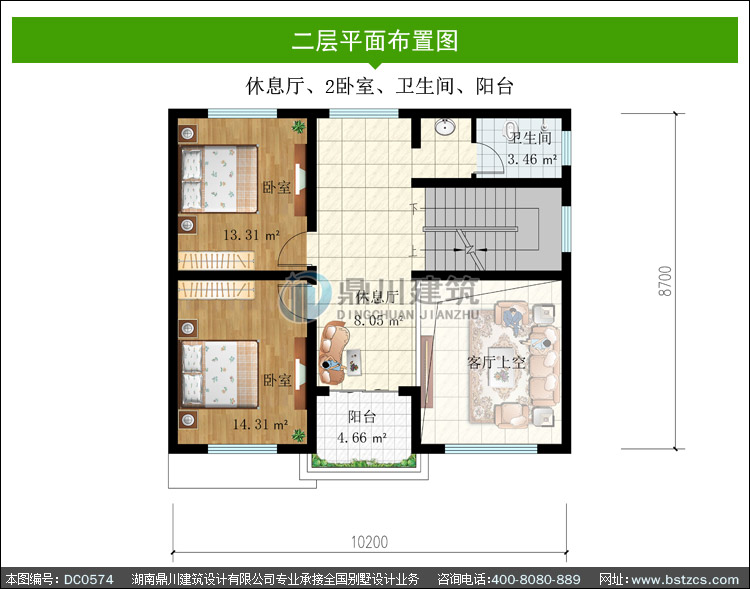 | 二 層: | 休息廳、2臥室、衛(wèi)生間、陽(yáng)臺(tái) | |||