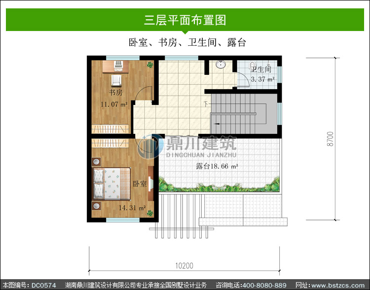 | 三 層: | 臥室、書房、衛(wèi)生間、露臺(tái) | |||