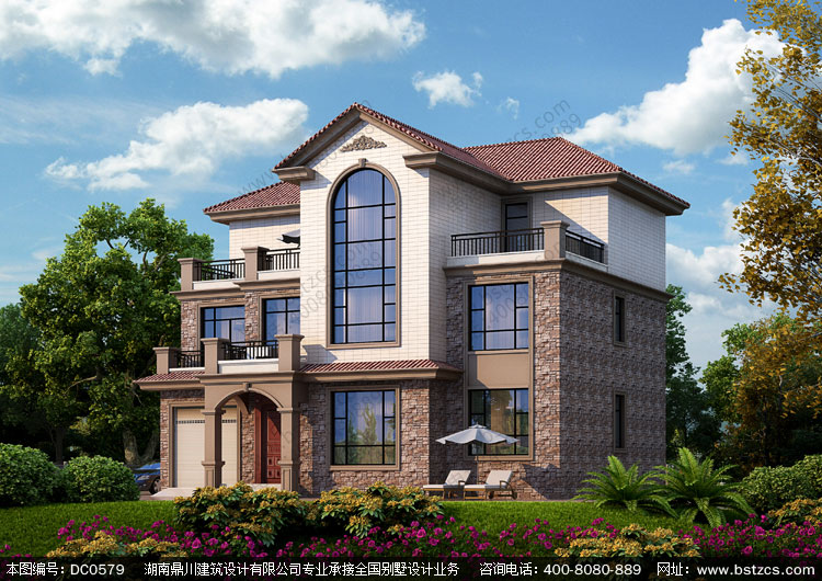歐式三層帶車庫露臺(tái)農(nóng)村別墅設(shè)計(jì)圖紙_三層別墅設(shè)計(jì),鼎川建筑