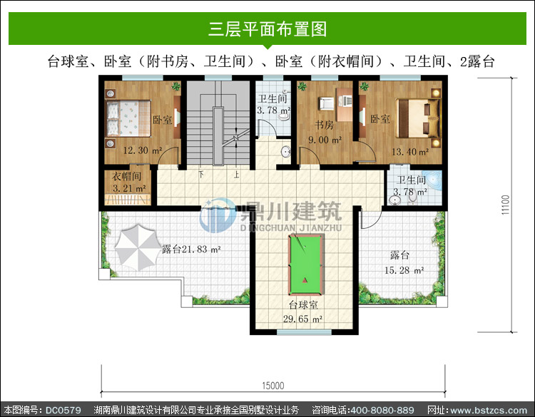 | 三 層: | 臺(tái)球室、臥室(附書房、衛(wèi)生間)、臥室(附衣帽間)、衛(wèi)生間、2露臺(tái) | |||