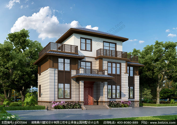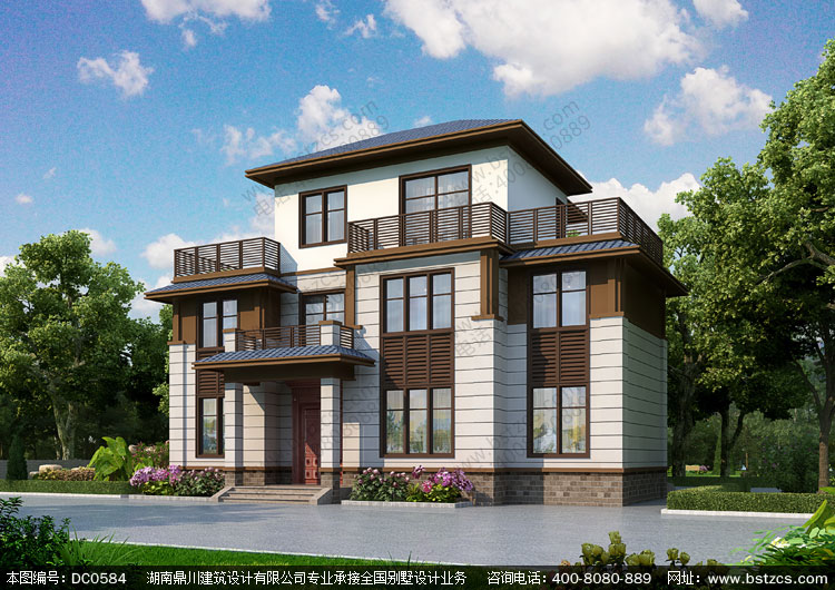 新中式三層帶露臺別墅設計圖紙及效果圖_農村三層別墅設計,鼎川