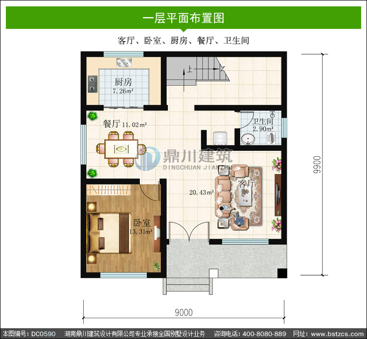| 一 層: | 客廳、臥室、廚房、餐廳、衛生間 | |||