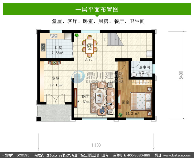 | 開間: 11.1米 | 進深: 8.4米 | 占地面積: 98.04平方米 | 建筑面積: 174.69平方米 |