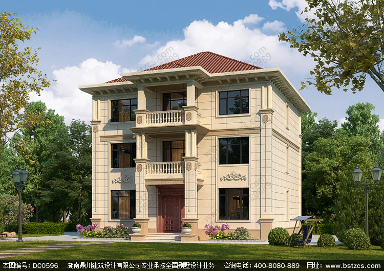 簡歐三層帶陽臺別墅設(shè)計圖紙_新農(nóng)村別墅戶型圖設(shè)計,鼎川建筑