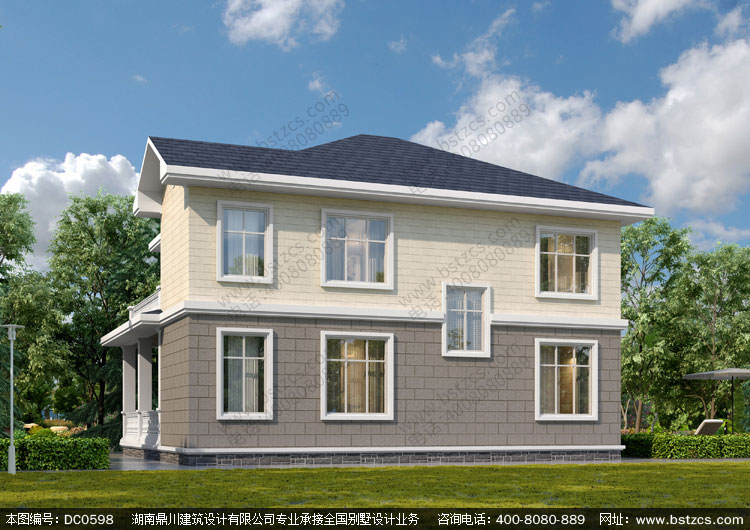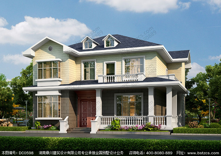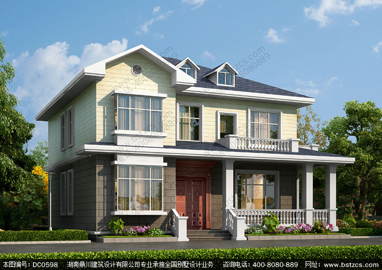 農(nóng)村二層帶檐廊別墅設(shè)計效果圖及施工圖_農(nóng)村兩層別墅設(shè)計圖紙,鼎川建筑