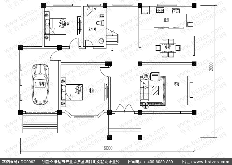 漂亮大氣的帶車庫及閣樓二層別墅設計圖紙_別墅設計圖紙,農村房