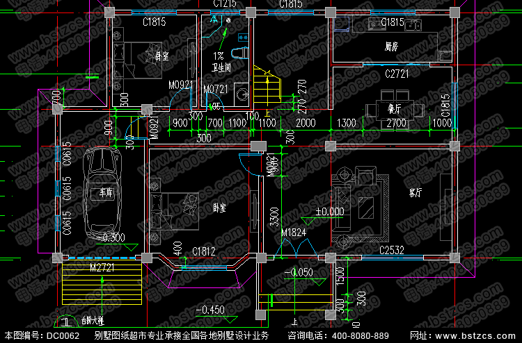 | 一 層: | 客廳、2臥室、廚房、餐廳、衛生間、車庫 | |||