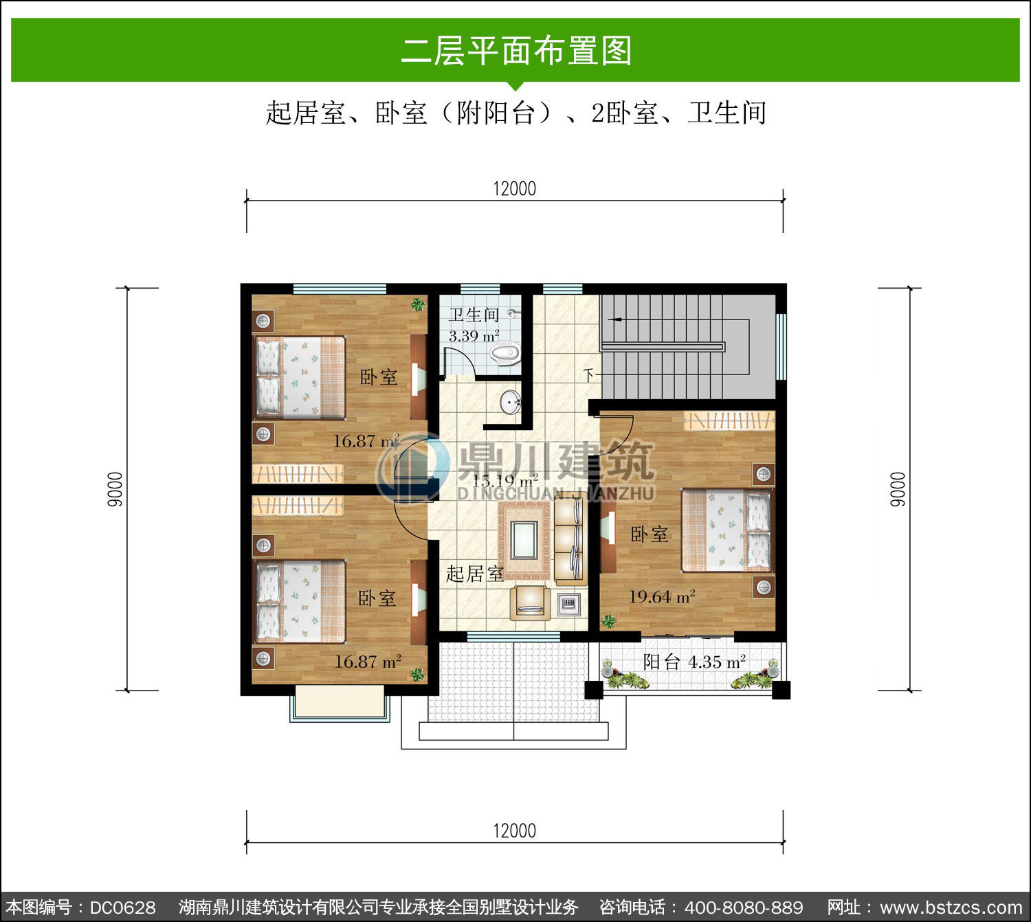 農村復式二層帶露臺小別墅設計圖紙_農村兩層自建房設計,鼎川建