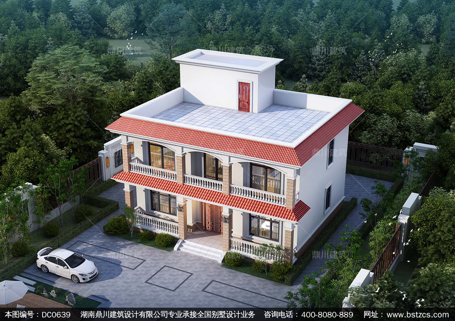 歐式二層帶陽臺自建別墅設(shè)計效果圖及施工圖_農(nóng)村兩層平屋頂房子設(shè)計圖紙,鼎川建筑