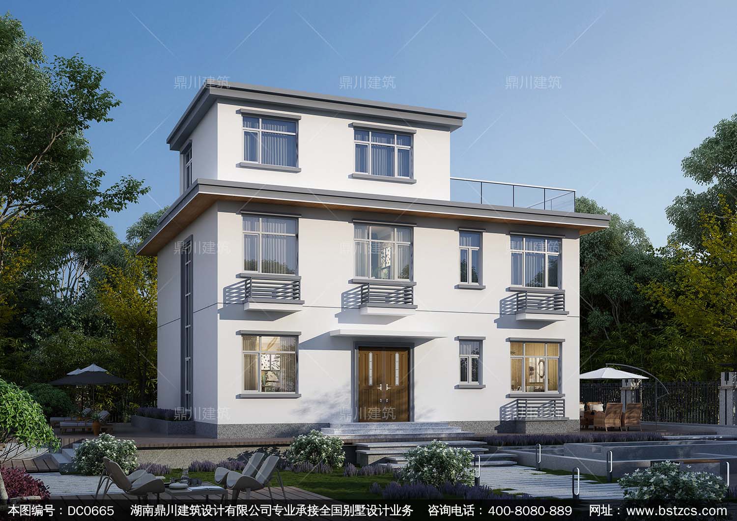 農村現代風格三層別墅設計圖紙_大氣三層自建別墅圖紙,鼎川建筑