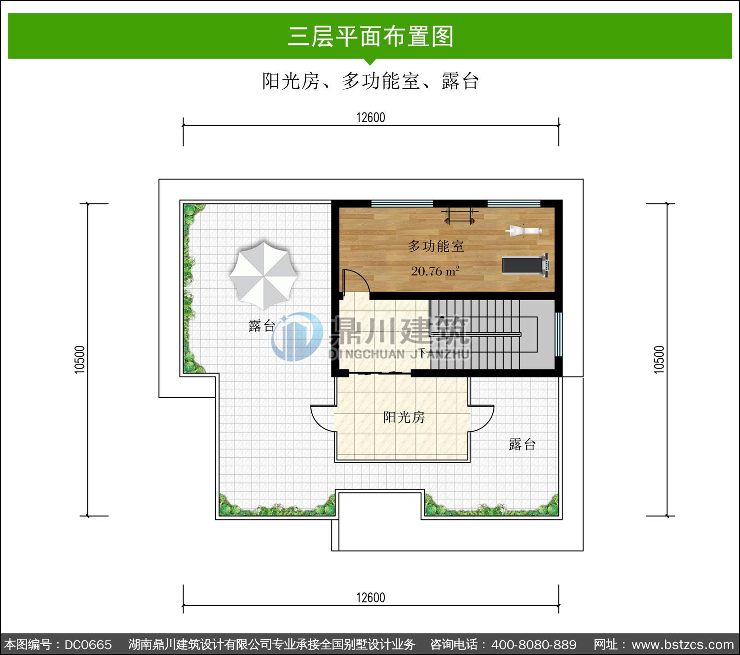 | 三 層: | 陽光房、多功能室、露臺 | |||