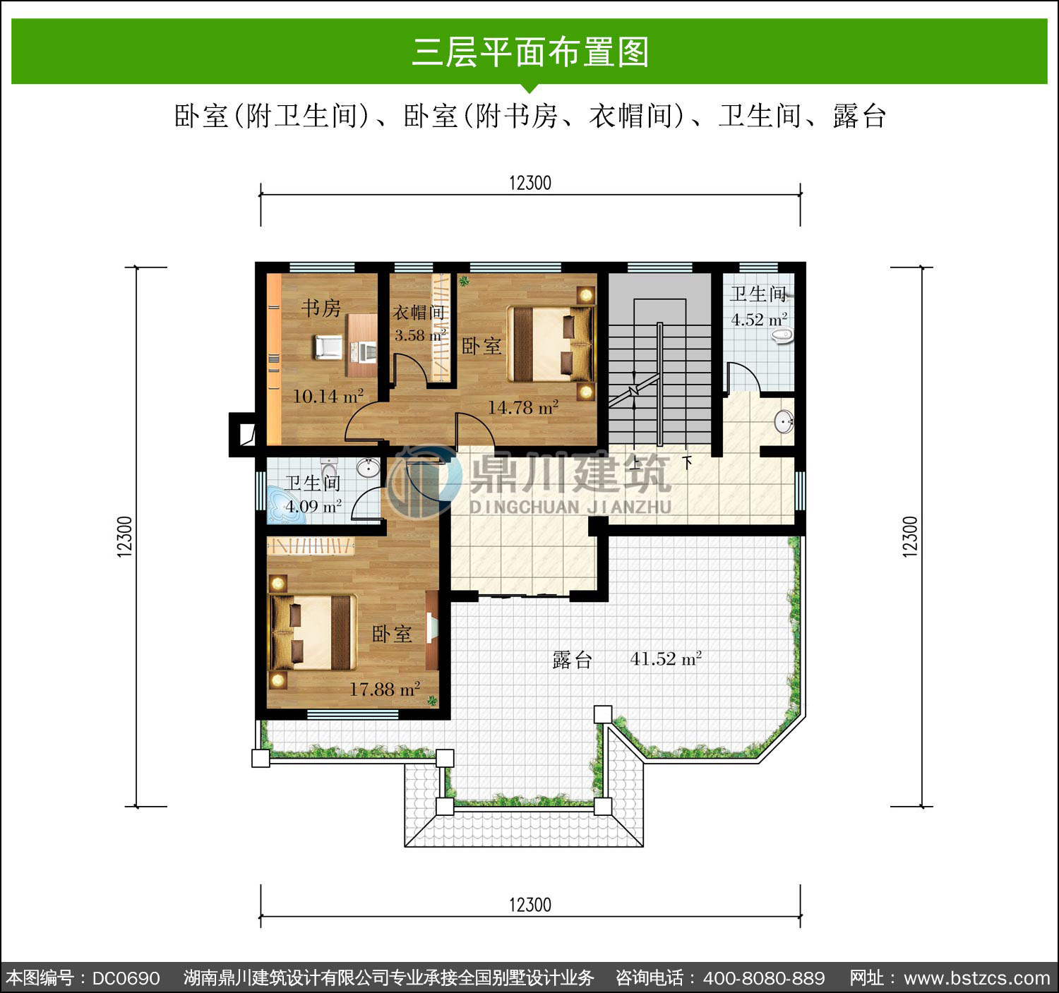 | 三 層: | 臥室(附衛(wèi)生間)、臥室(附書房、衣帽間)、衛(wèi)生間、露臺(tái) | |||