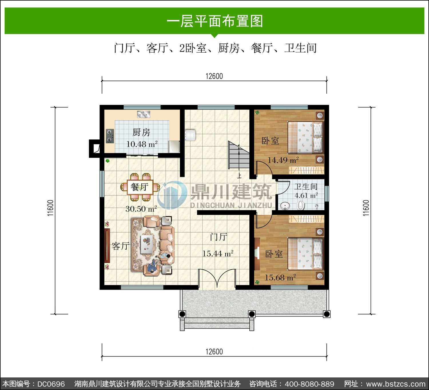 | 一 層: | 門廳、客廳、2臥室、廚房、餐廳、衛(wèi)生間 | |||