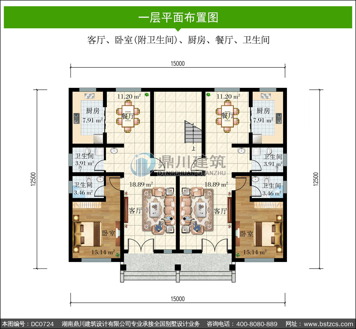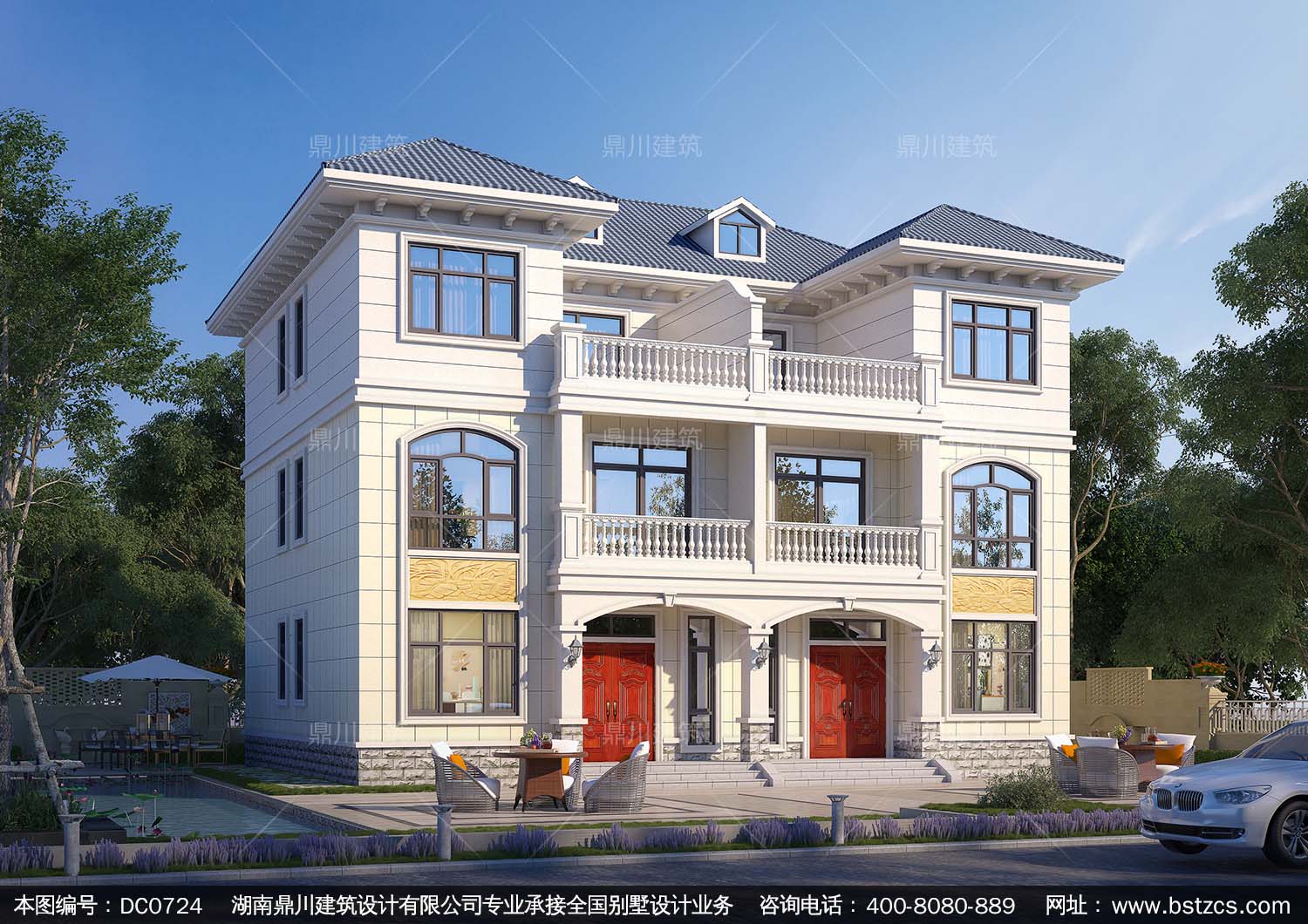 三層實用型雙拼別墅效果圖及施工圖_鼎川建筑,鼎川別墅圖紙