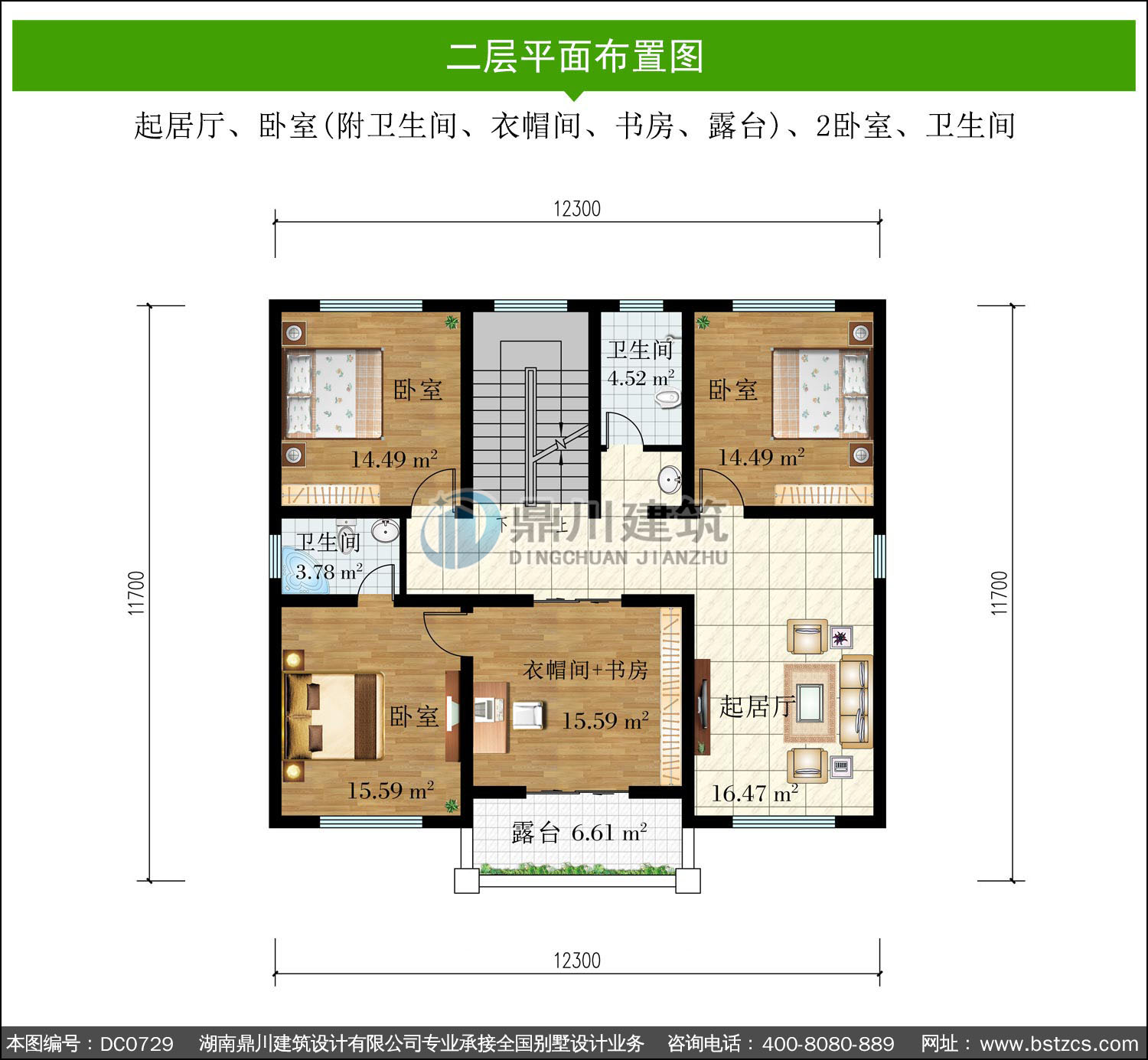 | 二 層: | 起居廳、臥室(附衛(wèi)生間、衣帽間、書房、露臺(tái))、2臥室、衛(wèi)生間 | |||