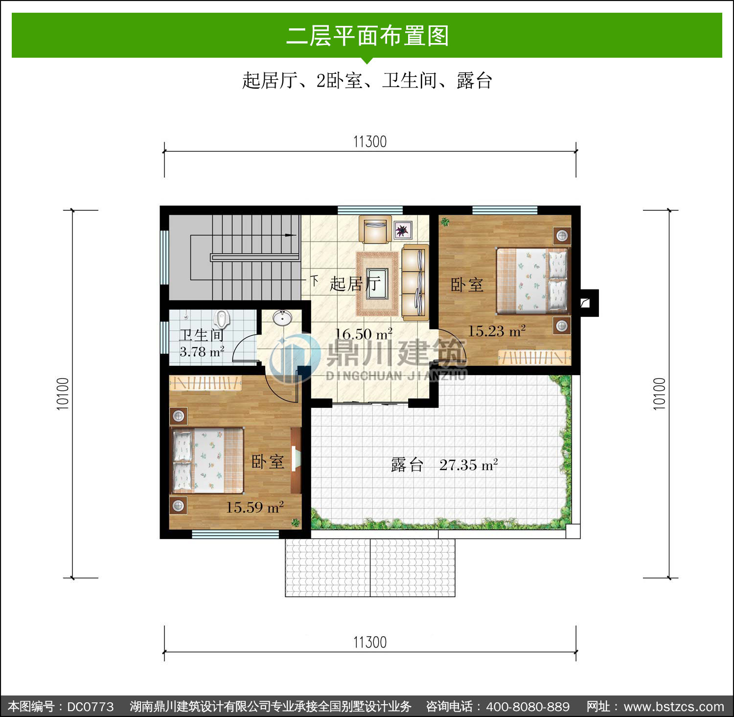 | 二 層: | 起居廳、2臥室、衛(wèi)生間、露臺 | |||