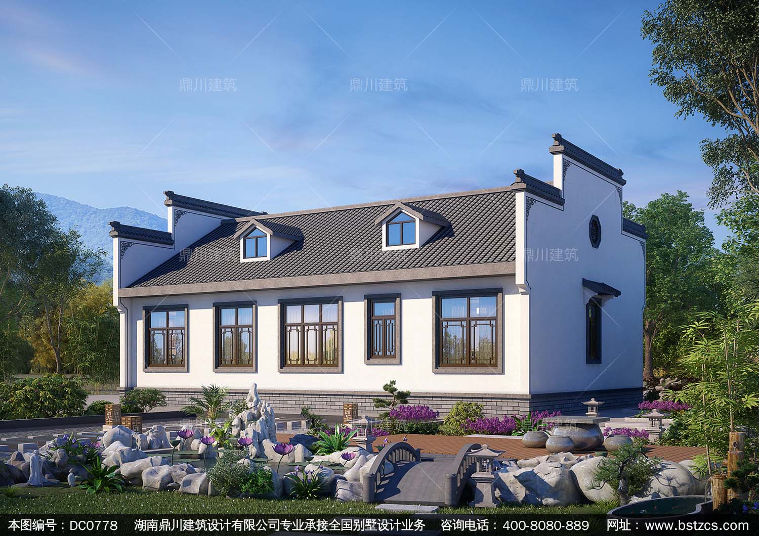 農(nóng)村一層中式自建別墅施工圖紙及效果圖_徽派房子設(shè)計(jì),鼎川建筑
