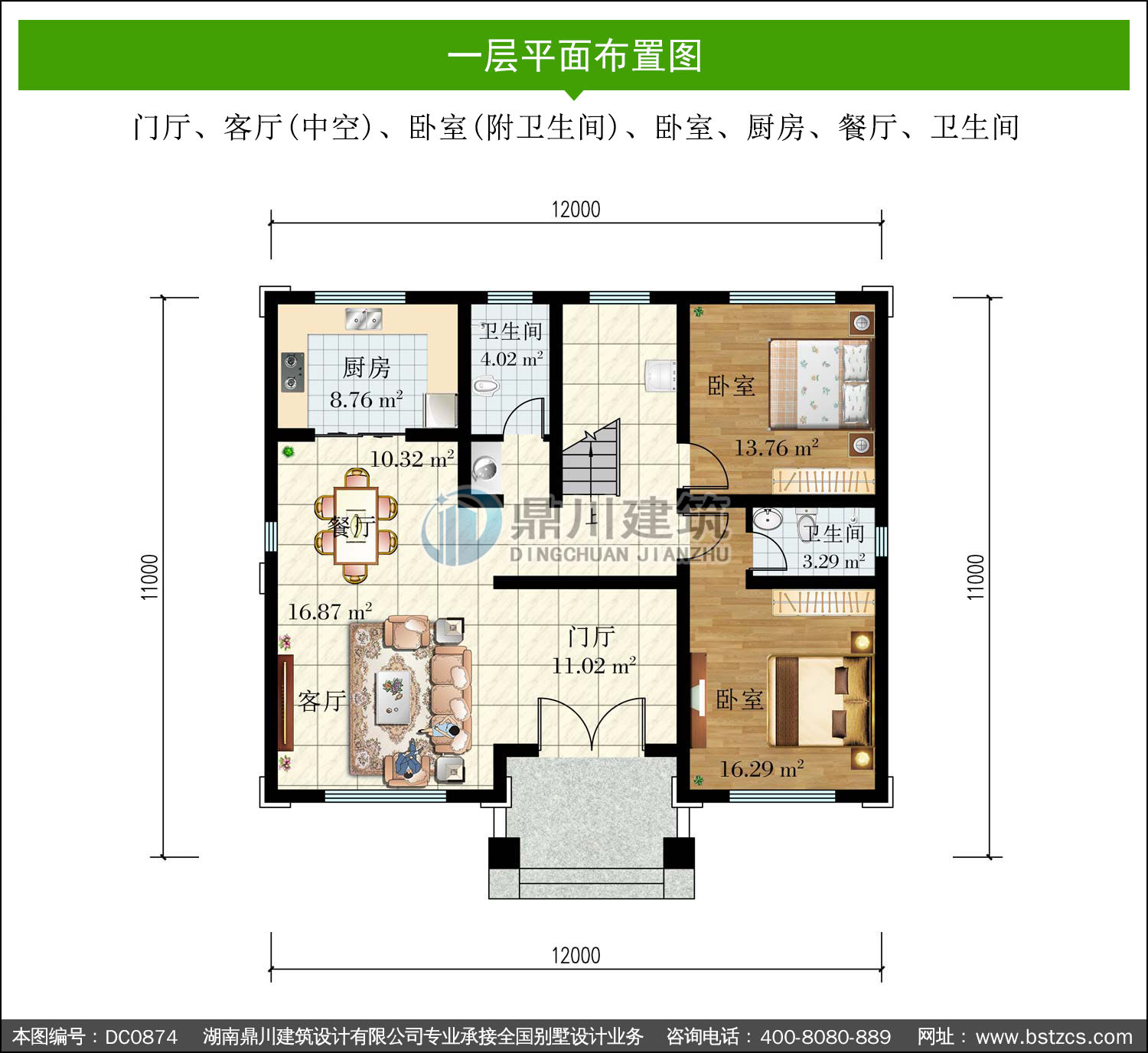 | 開間: 12米 | 進深: 11米 | 占地面積: 128平方米 | 建筑面積: 364.02平方米 |