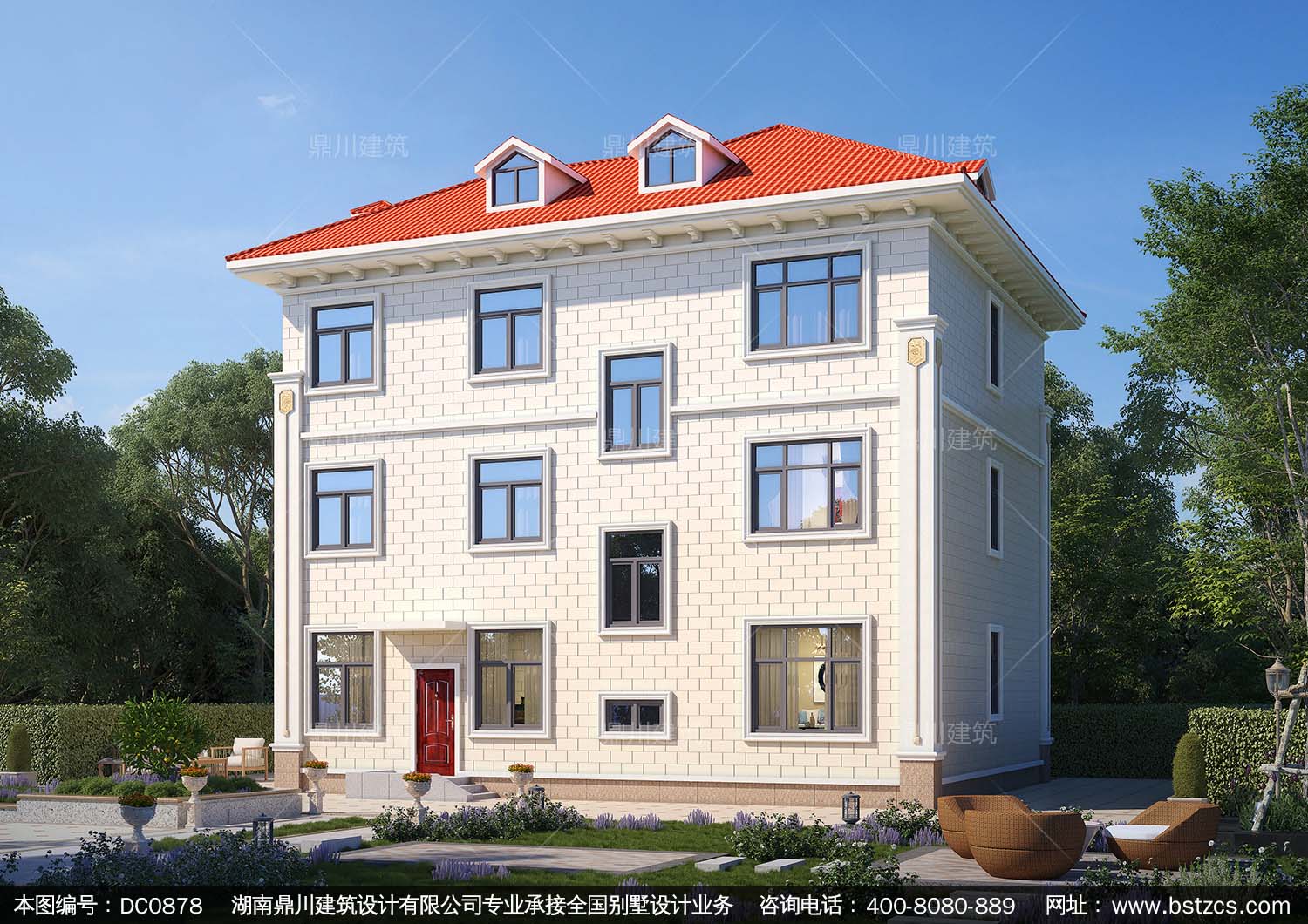 三層歐式帶露臺別墅施工圖紙及外觀效果圖_農(nóng)村自建房設(shè)計(jì),鼎川建筑