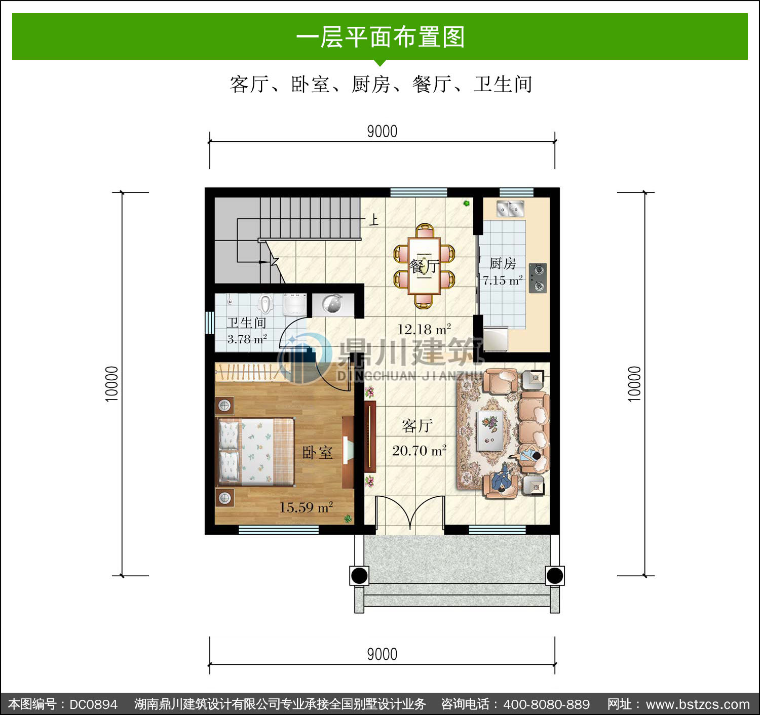 | 一 層: | 客廳、臥室、廚房、餐廳、衛生間 | |||
