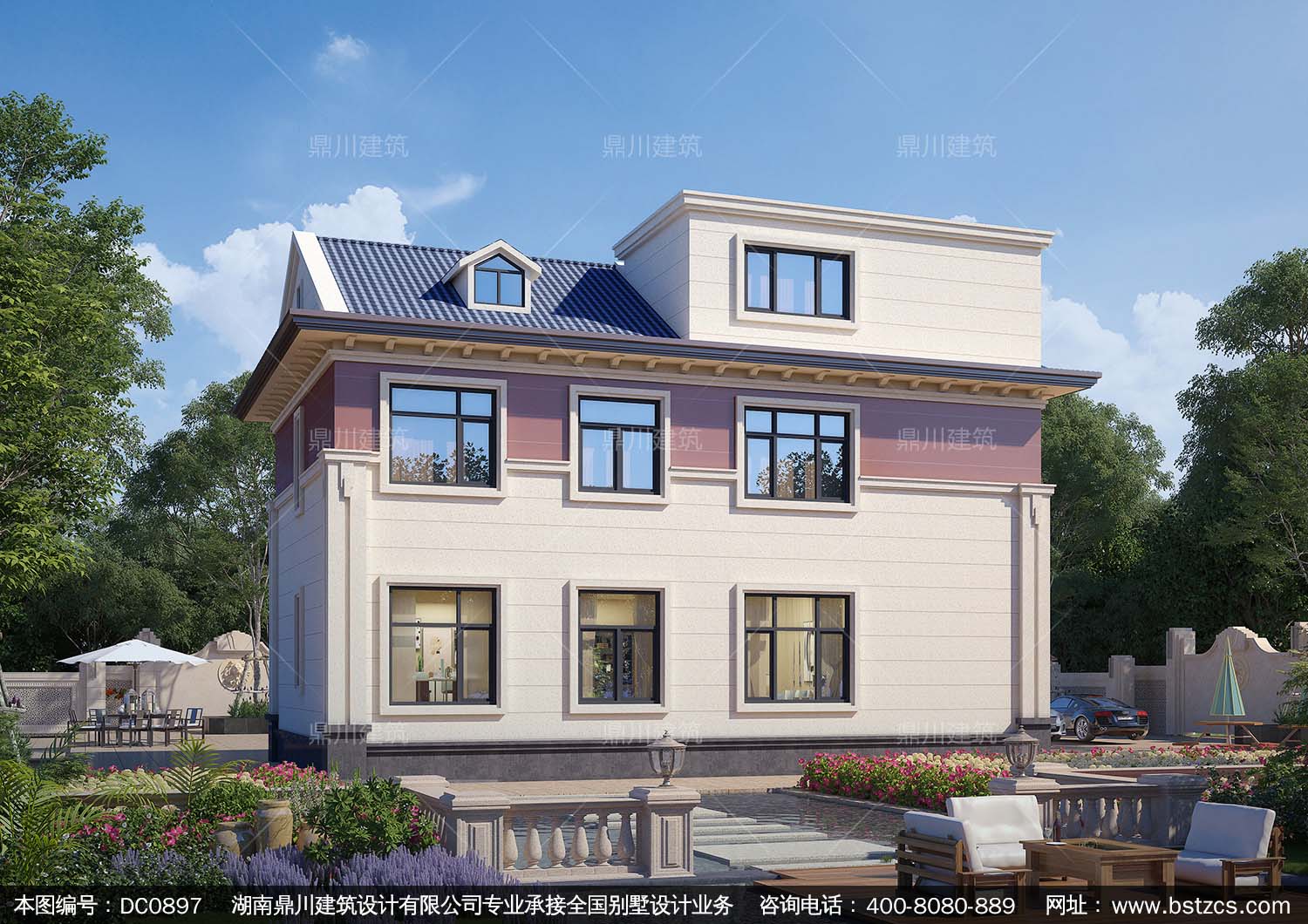 新農(nóng)村二層帶半露臺(tái)別墅施工圖紙及效果圖_鄉(xiāng)村自建房設(shè)計(jì),鼎川建筑
