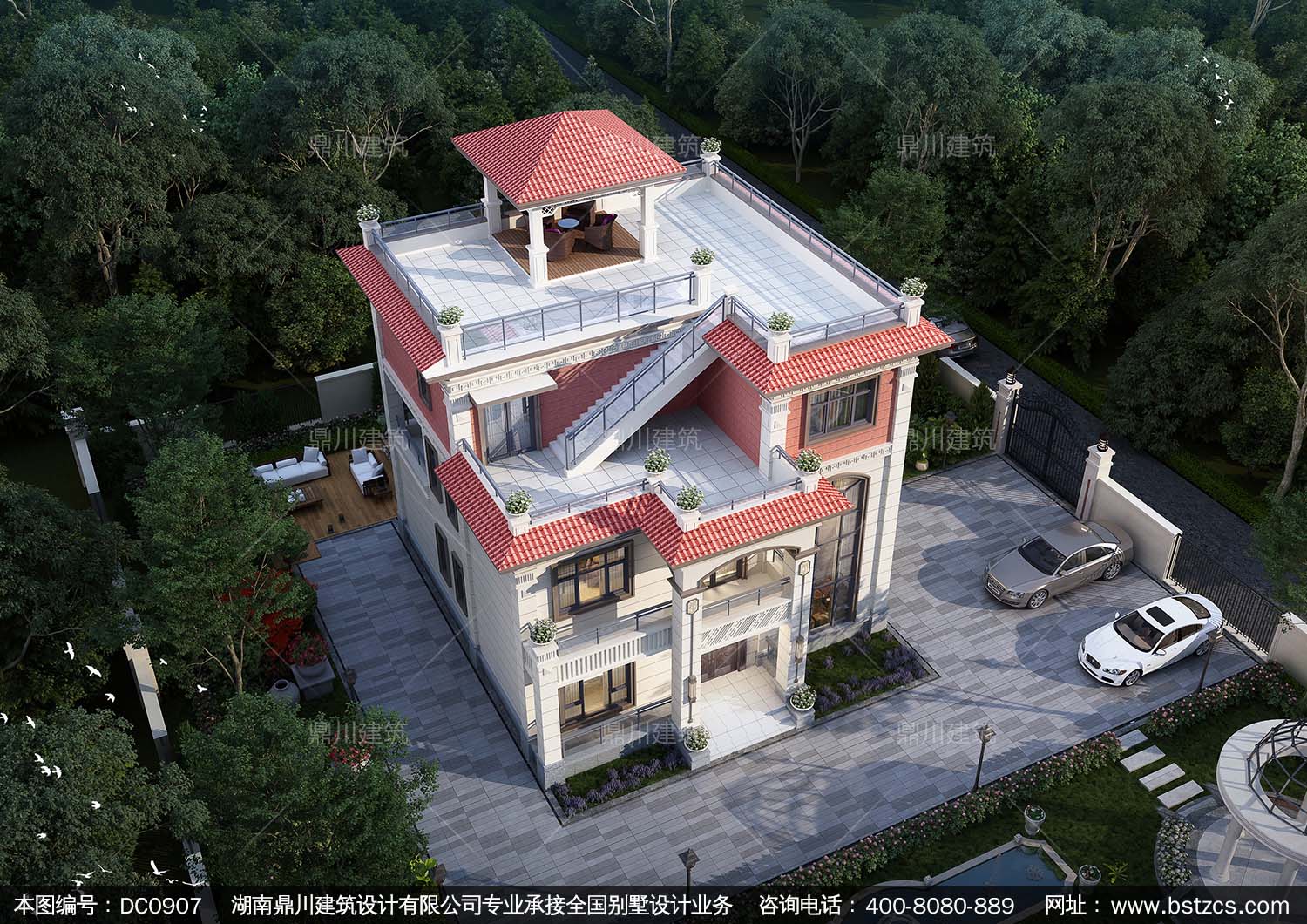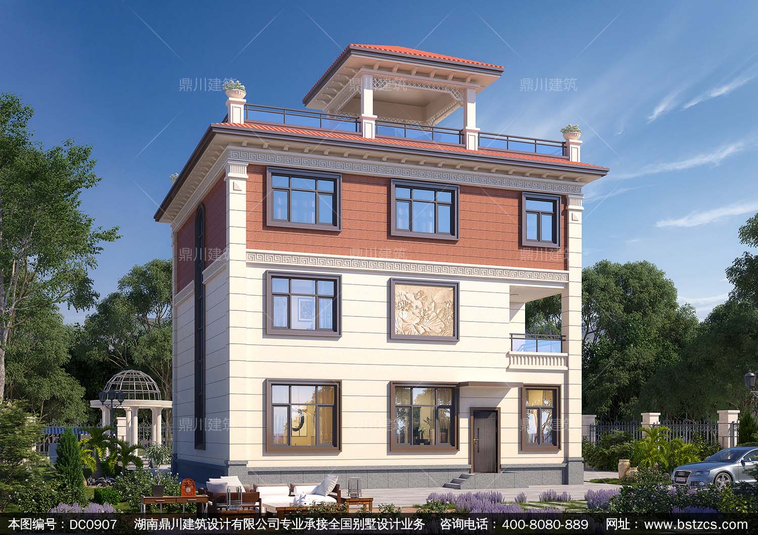復(fù)式三層帶涼亭別墅效果圖及施工圖紙_新農(nóng)村自建別墅設(shè)計(jì),鼎川建筑