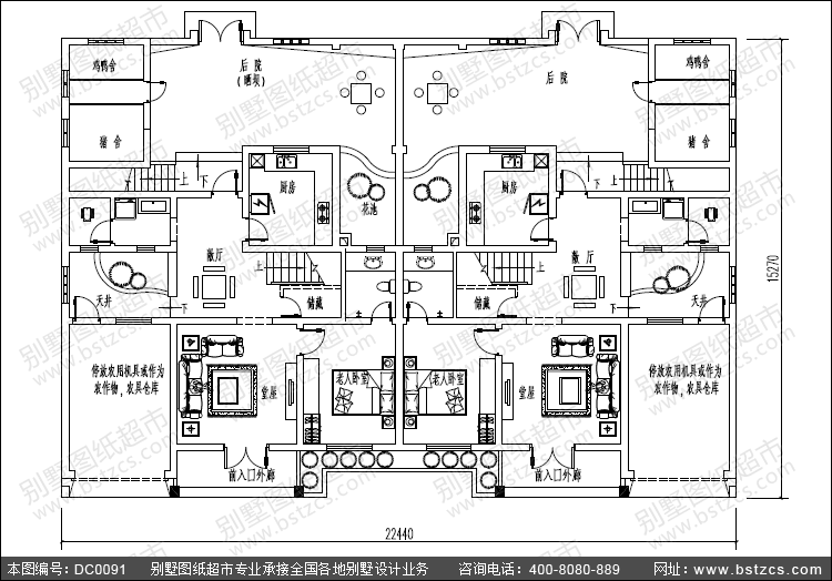 農村雙拼住宅圖紙全套_別墅設計圖紙,新農村別墅,農村自建房設計