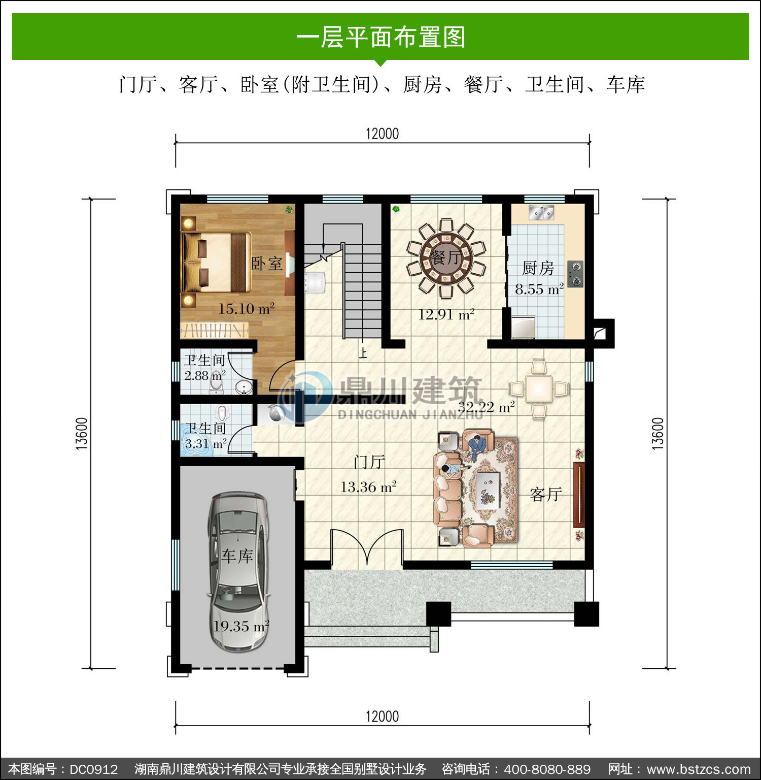新中式三層帶車庫別墅施工圖紙及效果圖_農(nóng)村自建房屋設(shè)計,鼎川建筑