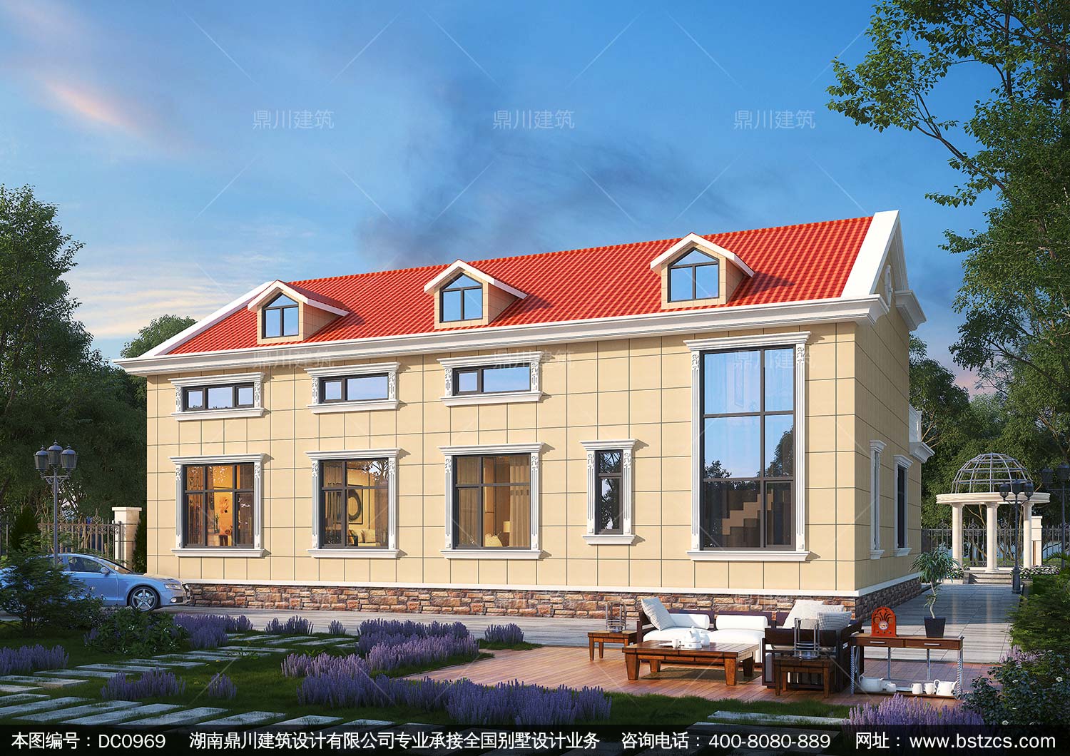 歐式一層帶閣樓別墅施工圖紙及效果圖_農村自建房設計,鼎川建筑