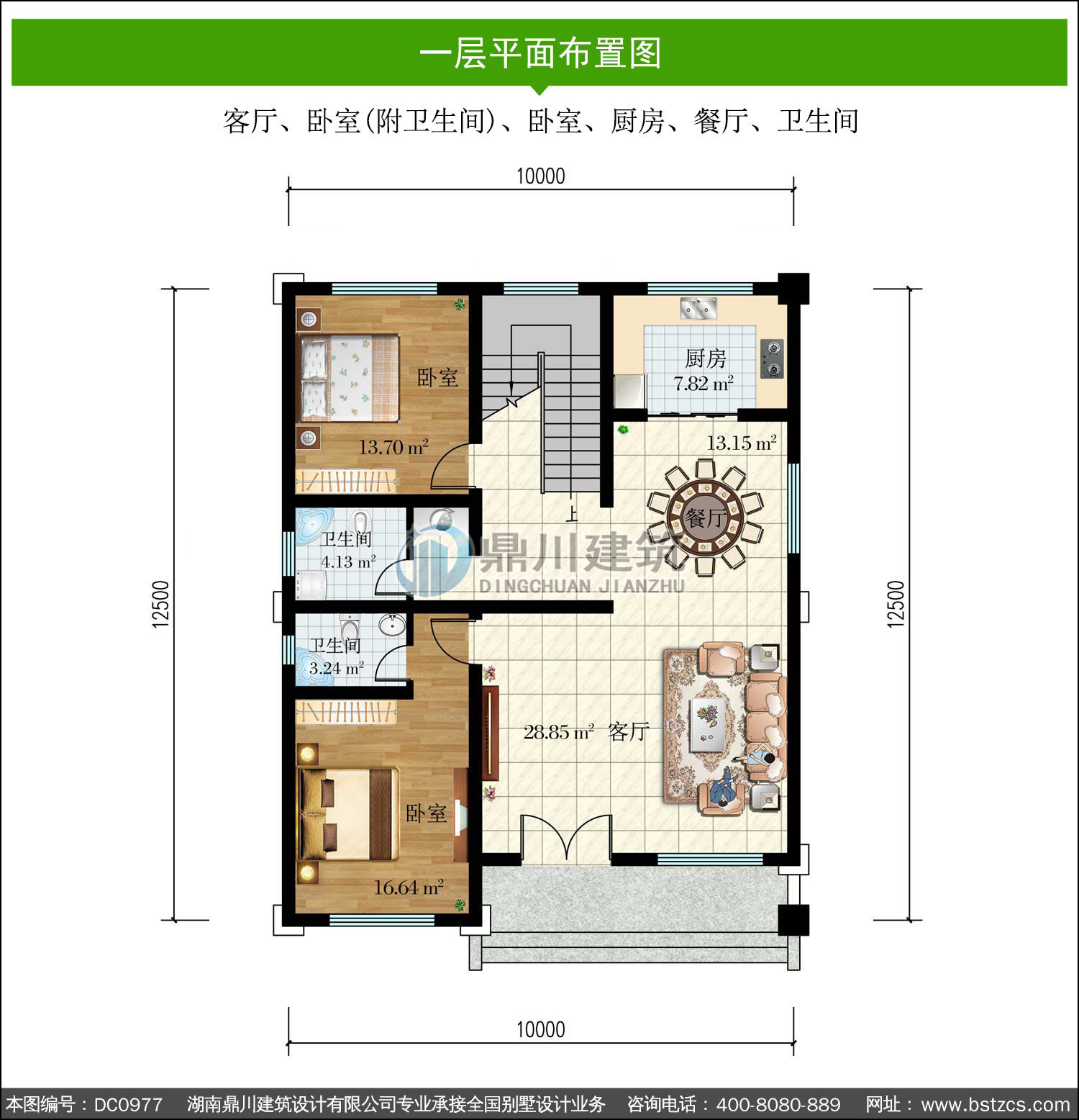 | 一 層: | 客廳、臥室(附衛(wèi)生間)、臥室、廚房、餐廳、衛(wèi)生間 | |||