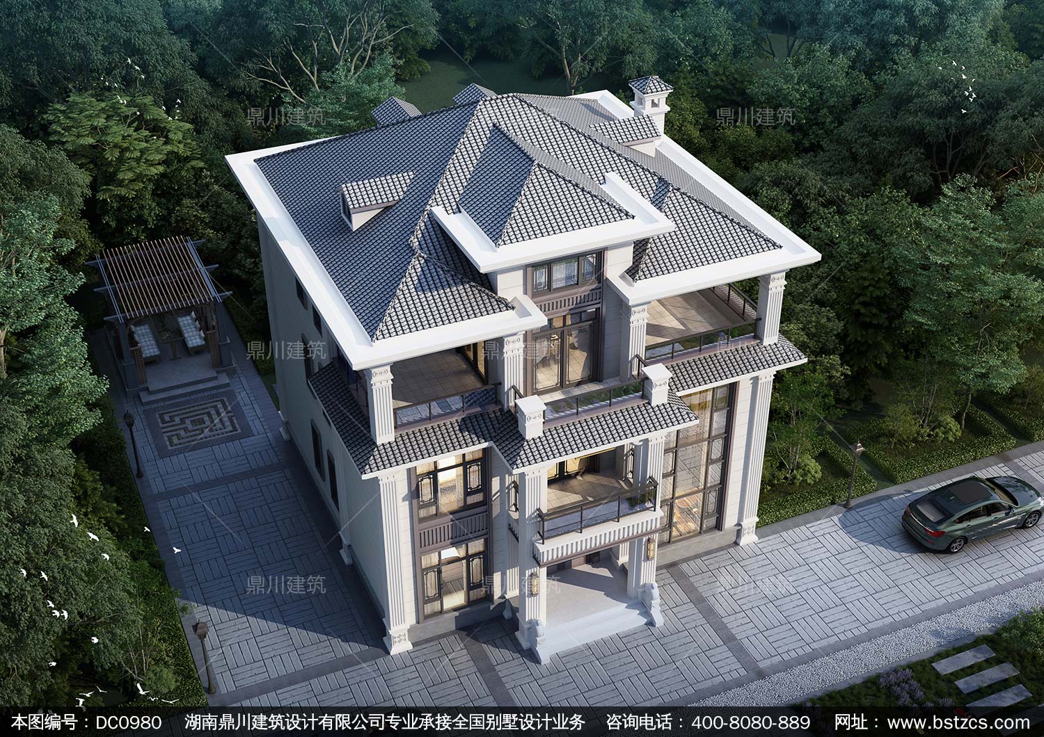 大氣復式三層帶旋轉樓梯別墅圖紙及效果圖_農村自建房設計,鼎川建筑