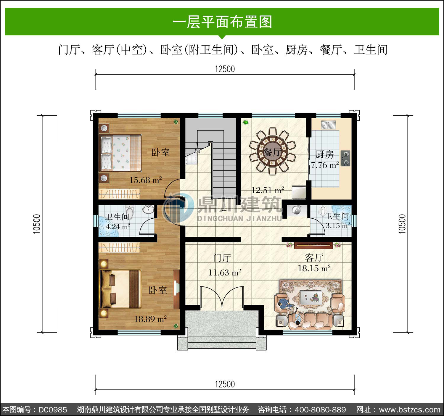 | 一 層: | 門廳、客廳(中空)、臥室(附衛(wèi)生間)、臥室、廚房、餐廳、衛(wèi)生間 | |||