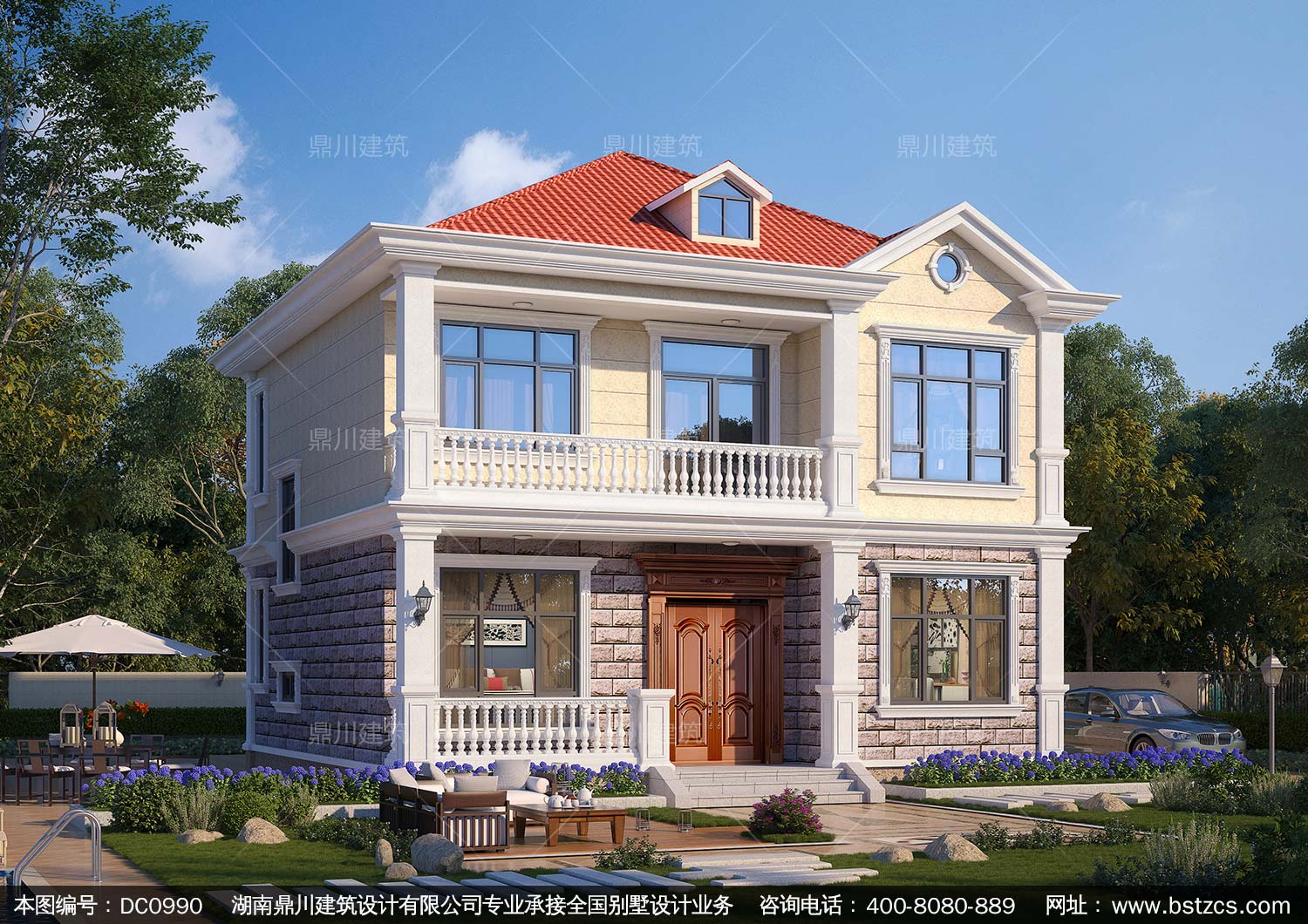 二層簡歐帶陽臺小別墅圖紙及效果圖_農村兩層自建房設計,鼎川建筑