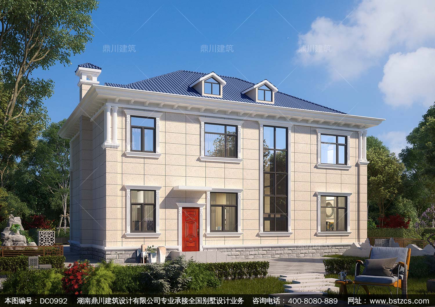 歐式二層帶陽臺別墅效果圖及施工圖紙_農村自建房設計,鼎川建筑